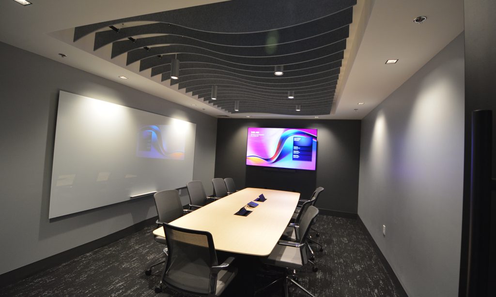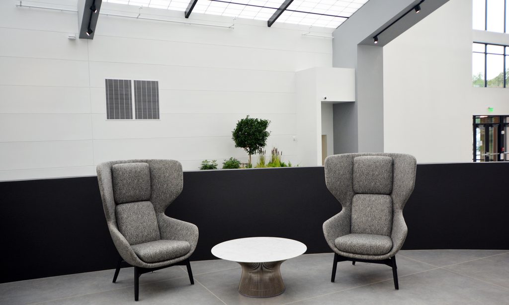 The Acushnet Headquarters Renovation includes both interior and minor exterior improvements, and two small additions. Interior improvements include a double height atrium, cafe servery, fitness facilities, wellness/medical offices, corporate office, and restrooms. Architectural improvements include new atrium and light well roof panels, a new entry addition, and fitness addition.