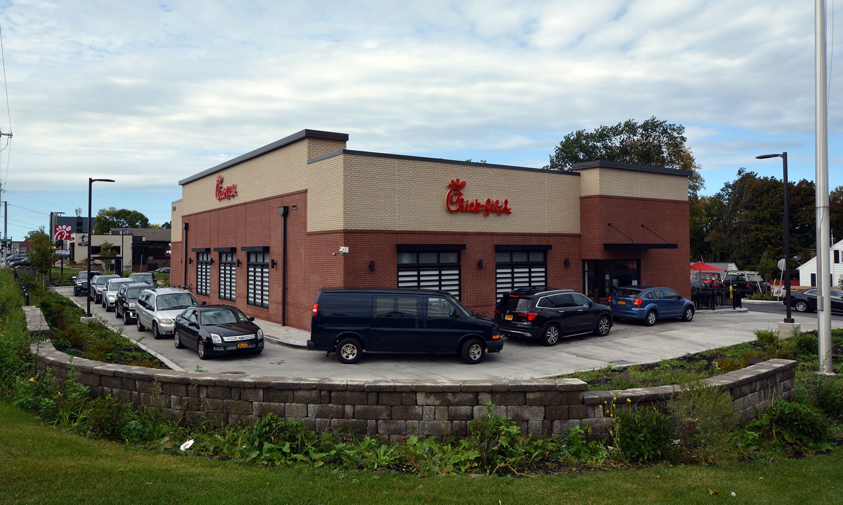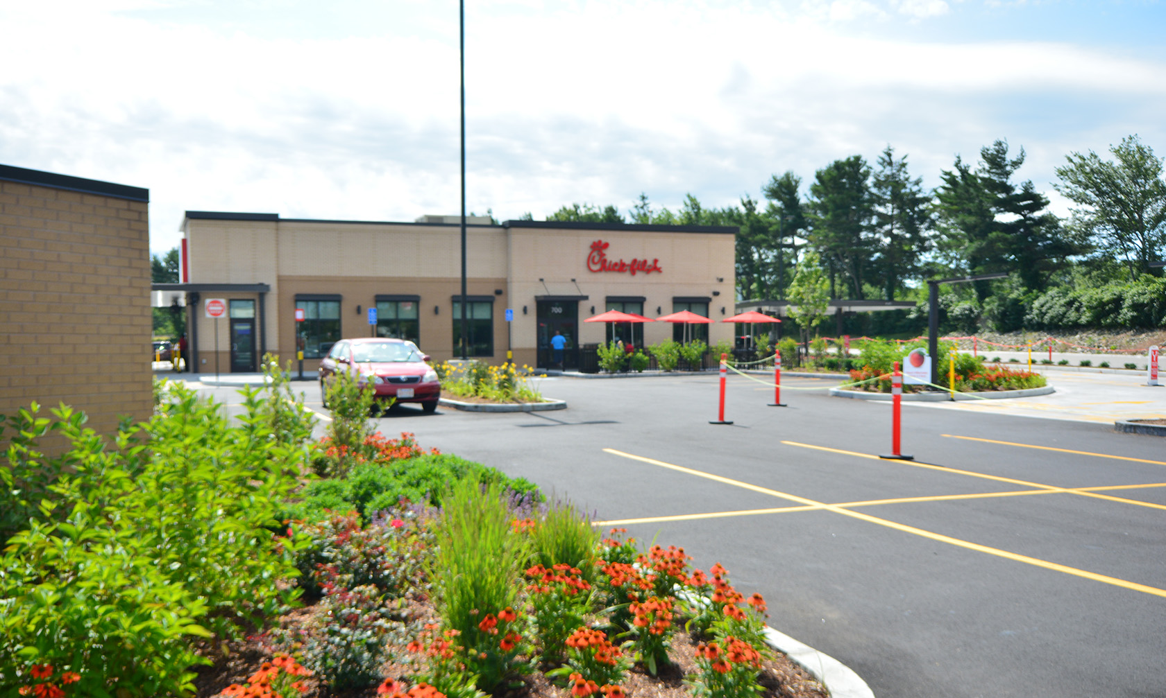 D.F. Pray completed construction on eleven Chick-fil-A restaurants in New England and New York. The new LEED Certified restaurants feature designs using hand-made, authentic materials for a vintage-inspired interior, including a large gathering table made from reclaimed wood, subway tiles, and light fixtures made from recycled materials. The dining rooms contain seating for 100-150 people, including a 2-story indoor play area for children.
